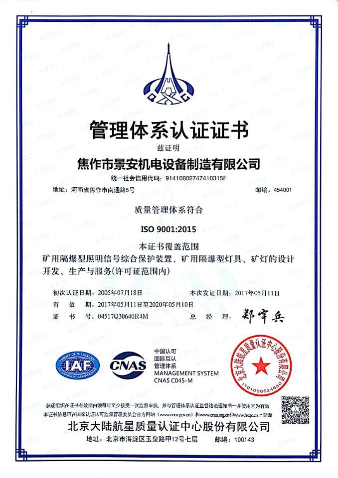 焦作景安公司始終堅持“以科技為先導(dǎo),以市場為導(dǎo)向”的發(fā)展戰(zhàn)略,不斷進(jìn)行新產(chǎn)品的研制和開發(fā),在國家“六五”到“九五”期間,承擔(dān)和參與了國家多項科技攻關(guān)項目。并被中國電器工業(yè)協(xié)會評定為“質(zhì)量可信產(chǎn)品”。特別是在礦用防爆燈領(lǐng)域,礦用隔爆型半導(dǎo)體(LED)照明燈具,2008年列入國家火炬計劃,獲2009年河南省工業(yè)和信息化廳的科技成果二等獎,并擁有多項國家專利。 |